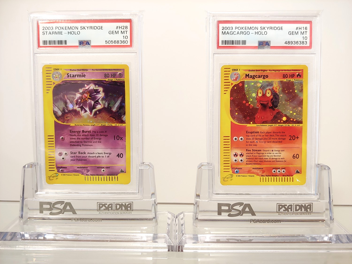 Pretty fond of his Magcargo. The line art is quite distinct and offers a nice contrast when displayed beside Artia’s Magcargo. Very nice to see differing interpretations of the same Pokemon in one set. His Starmie is excellent as well. Being the only WOTC Holo Starmie got, it’s very nice to see such a colourful interpretation.