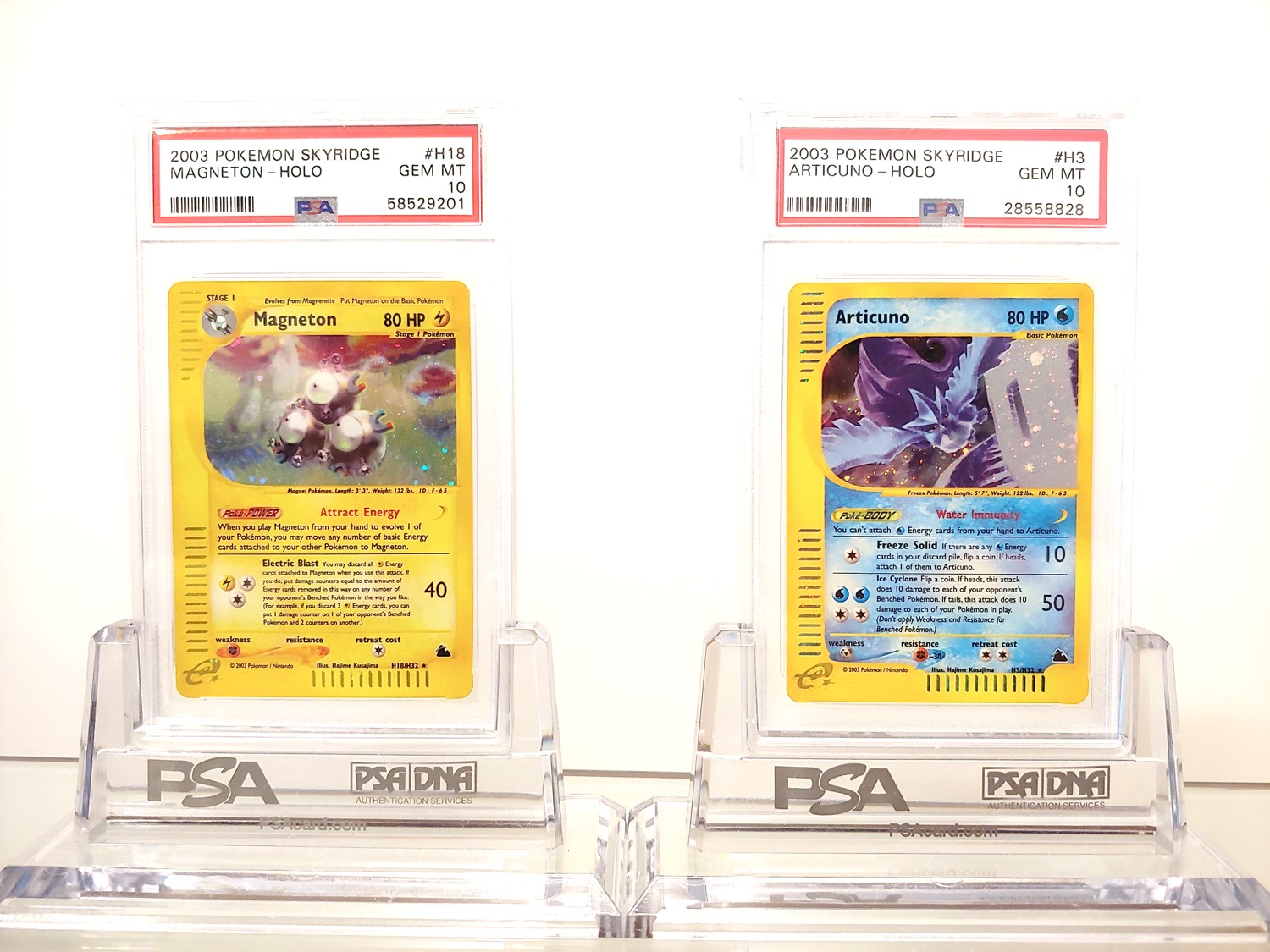 Didn’t realize I already owned all of his Skyridge regular holos. It’s amazing just how varied his art is, even within the same set. The Articuno is one of my favourites as it looks like something straight out of a dream with the purple mountains in the background and the white ruins. His Magneton is one of the most surreal pieces of art to come out of Pokemon and I absolutely adore the life he was able to breath into an otherwise uninteresting Pokemon, design-wise.
