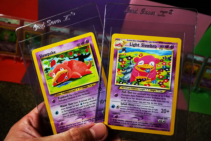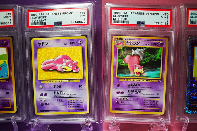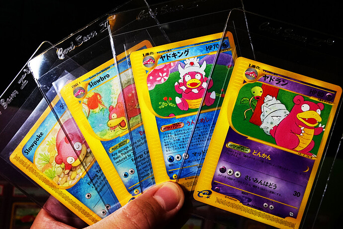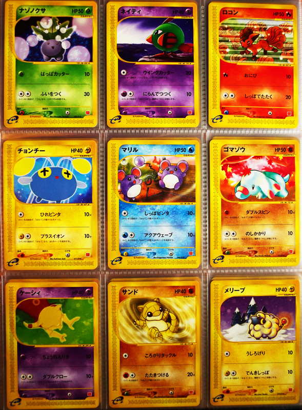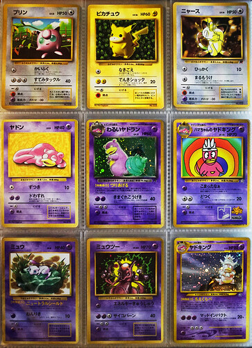 And this final page is the special one. The first Pokemon cards, more of the divine Keiji, a cute kitten, some Slows, and the Mews, one of which’s artwork has grown on me a great deal over the time I’ve spent on E4. I think maybe I had to get past the overexposure to the english movie copy. The glossy oldback is far more easily able to be appreciated. It’s gorgeous. Hama Chan’s Slowking is so great! What a card, and what a creation story! And playmat Slowpoke is super early in the release history and a fabulous artifact, especially for a lover of his family.
