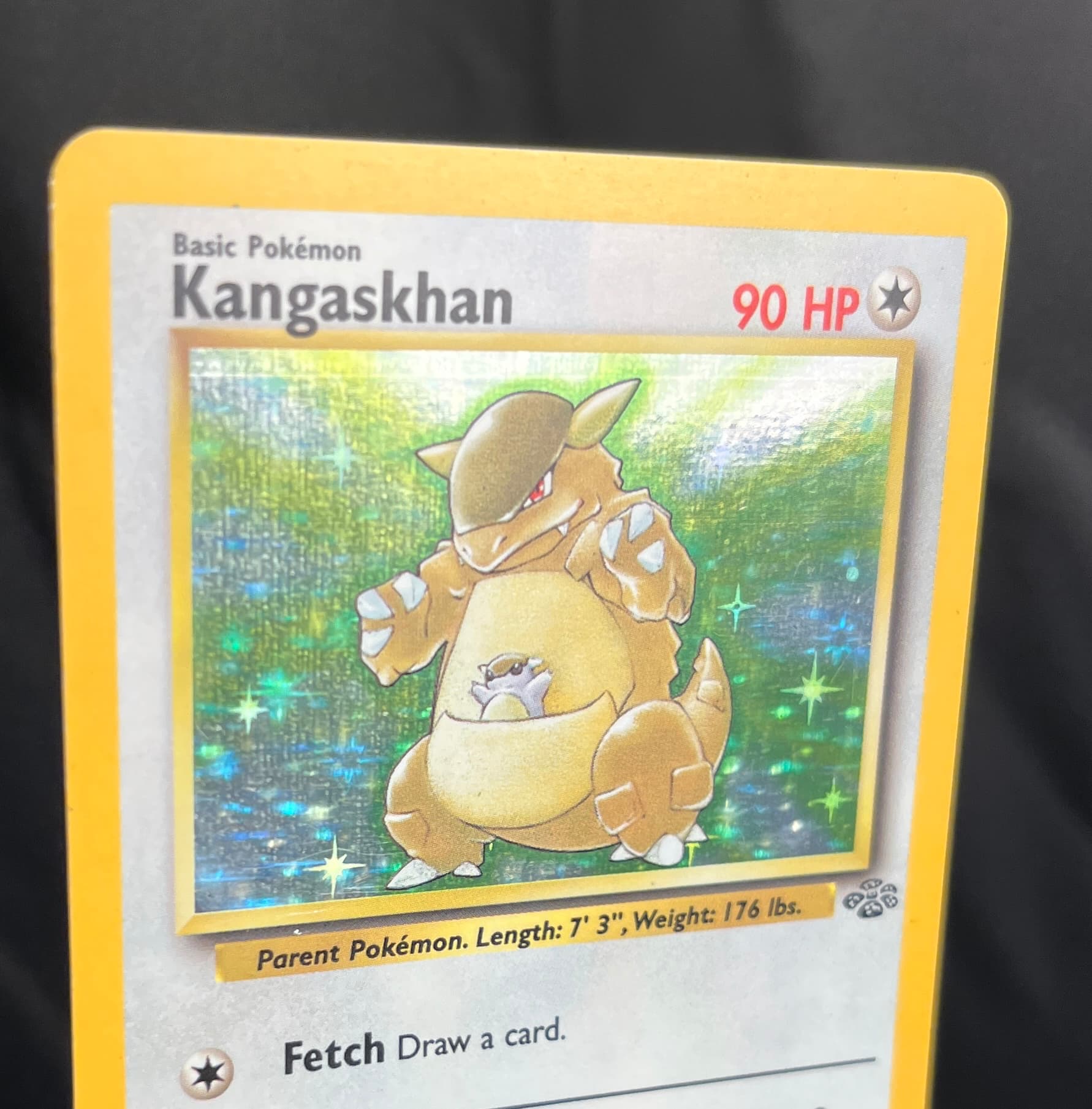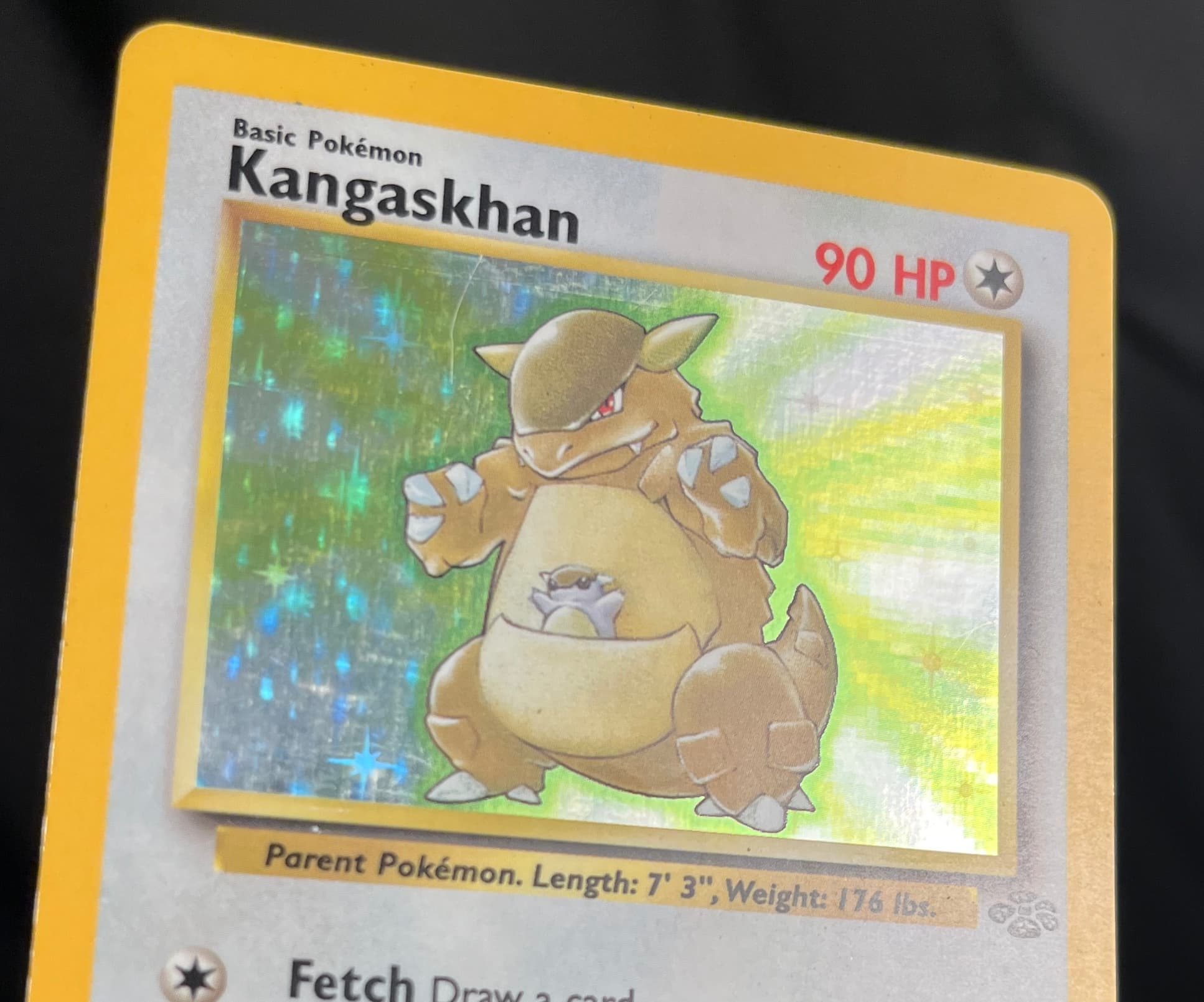 In 2024, it does not smell like PlastX anymore. The texture of the holo looks a little strange to me, but I also know that it’s altered. I left some of the deeper scratches because I only did one or two coats. If I spent more time and used more PlastX, it’s possible that those deeper scratches would have been removed from the abrasives. I’ll also note that the holo surface is unusually reflective, almost like a mirror. I can see myself in the reflection of the card, which seems odd to me.