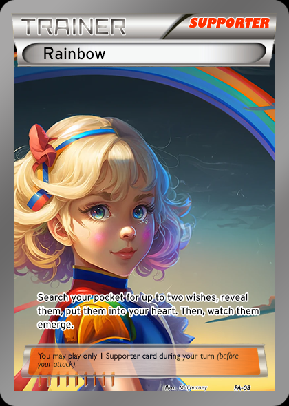 I did some research for a potential niche side collection today and want to share my findings. These are all the cards with rainbows in the background. I prefer the earlier ones - the later ones feel more generic and uninspired.