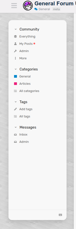 What if the Community, Categories, and Tags tabs were put below the Profile tab? This would put everything in one place, with a single click to your profile picture.
