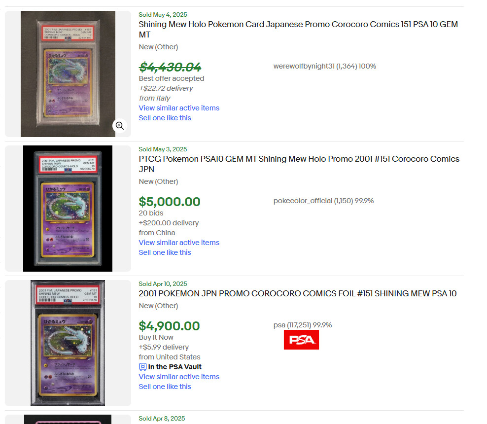 Same I wanted a PSA 10 corocoro mew, was 3k and now 5-6k