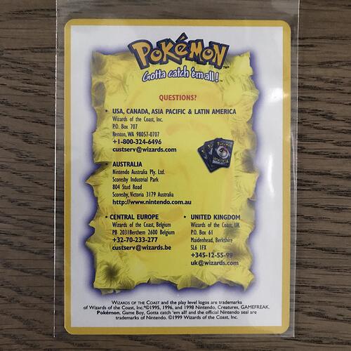 This is slightly bigger than a regular TCG card, it’s similar to the various “Master The Game” on one side, but has different text and background. It was given with the Arbok at the Hong Kong Pokemon League in 2001.