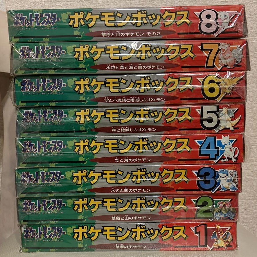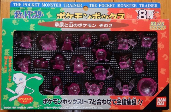 This specific box series (1996 Bandai Pokemon Box) has 8 variants, which is visible on the back of every box, and encourages you to collect them all.