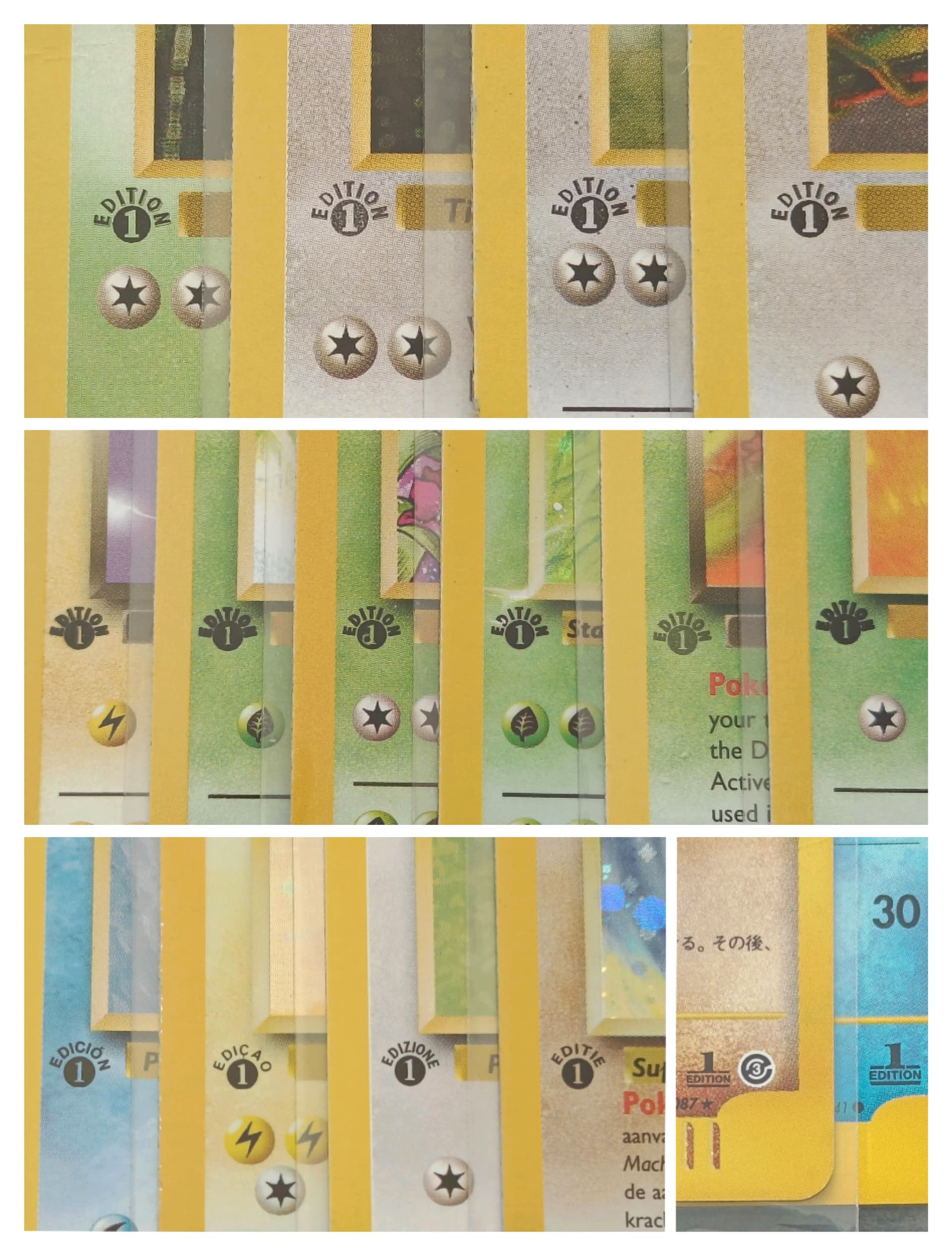 From the beginning I knew that I wanted fewer cards that hold more value instead of thousands of cards with the same total value because I don’t see myself holding onto boxes full of cards for a long time but three or four binders shouldn’t be a problem. My main reason for collecting now is that nostalgia of the early days that gave me so much good memory’s and also the fun of collecting I guess, sometimes I think not much explanation is needed to enjoy something. While researching I learned that Belgium printed allot of cards witch created my interest for the printing process and printing locations and I hope to one day recognize Belgium printed cards. Because I collect the Pokédex in the way that I do I started to see allot of differences in the cards. This was a big drive force for me because I kept finding new things and I’m sure I’m not even halfway there. I also think that the reason I like searching for these very small differences in the cards is mainly because there are just so many to find. In the first sets a lot of changes/ mistakes where made and because these variations are there to find I enjoy looking for them.
