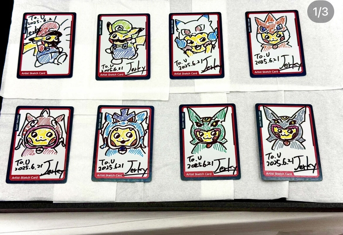 Surprised he is even drawing pokemon i dont remember him sketching any pokemon at the legends expo signing so why start now.