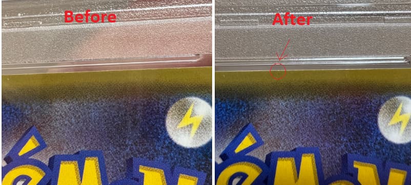 We have an ability to overlook certain things when we own a card and/or not looking over it with as much scrutiny as we do when we are looking for damage. I STILL send cards in for grading, get them back and see something I swear wasn’t there. Check it again and again, then the images and realize it was. Cards inside a PSA case are even more difficult due to the glare and edges of the holder inside the case. Not to mention pictures can look wildly different with even the small amount of light and angle and backdrop, so the before and after would need to be exactly the same, especially Japanese new backs.