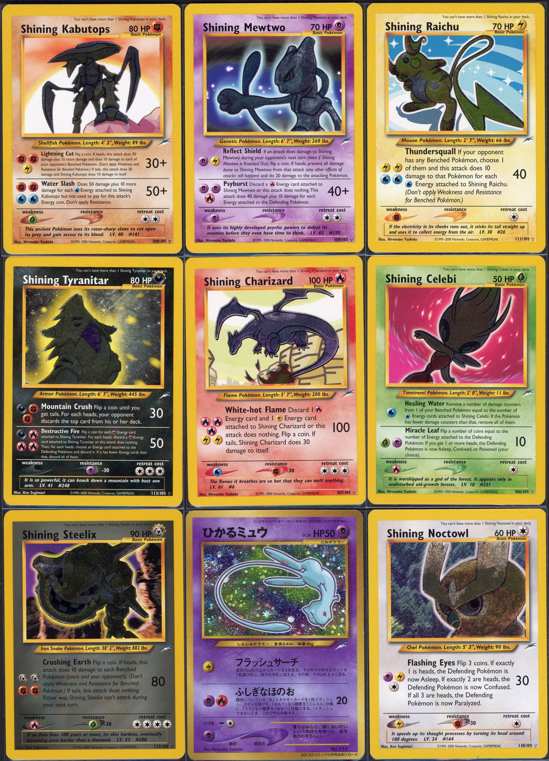 Shining Mewtwo is my favorite. His stance is powerful and menacing. A single cautionary arm raised. Eyes focused and determined. His furrowed brow suggests he’s prepared to use force.