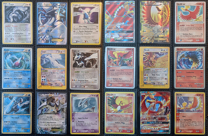 haha I wish I could say I was being that clever. I mulled over what to put in that middle slot. I wanted something that was representative of both Lugia and Ho-Oh. A little rainbow with a side silver, you know? A Tag Team Ho-Oh & Lugia would have been perfect. I even considered Ash’s Pikachu I Choose You! promo. But it leaned too heavily toward Ho-Oh. In the end, Rainbow Energy felt right. I get some of Ho-Oh’s color and a little of Lugia’s Elemental Blast.