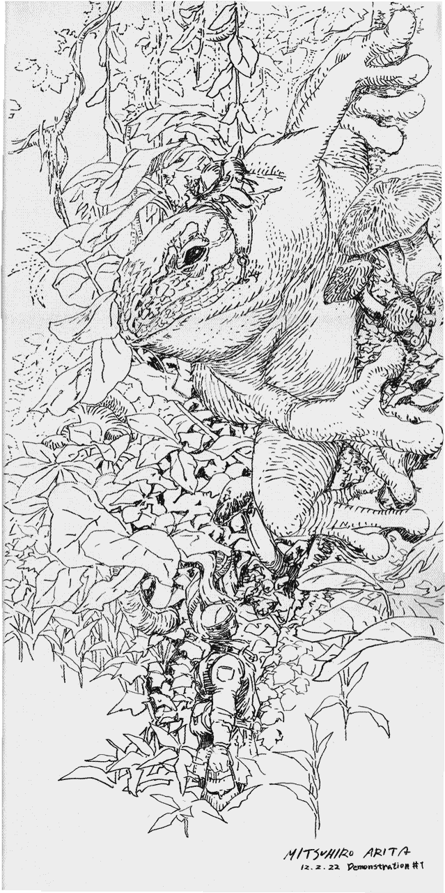 - Someone asked Mr. Arita how he uses the interplay between technology and nature in his art. He said that as an illustrator, he needs to understand both so that his art is better