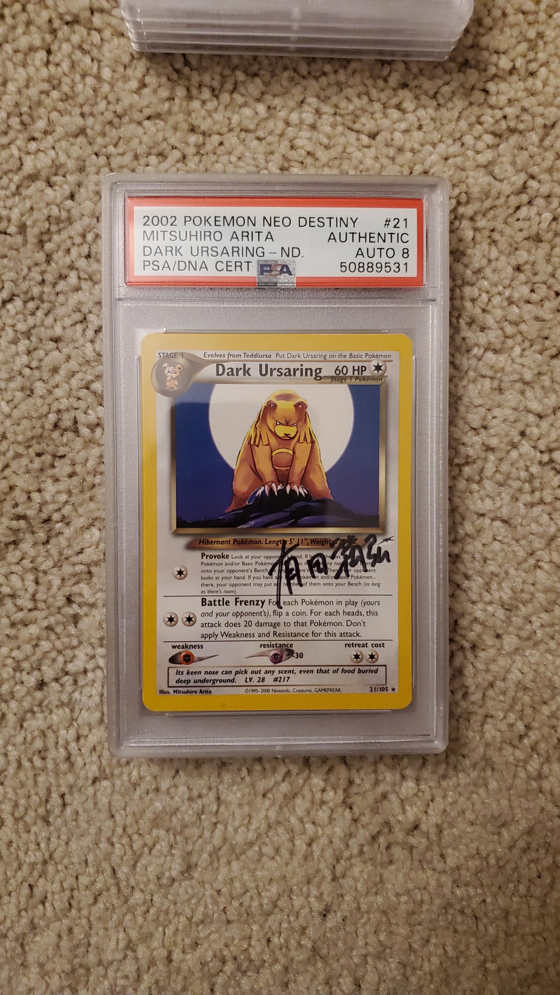 EDIT: I still have no idea why 17-year-old me thought that, of all cards, Dark Ursaring was the one I wanted signed by him (In addition to my shadowless charizard, venusaur, dragonair, dark dragonite, and dunsparce).