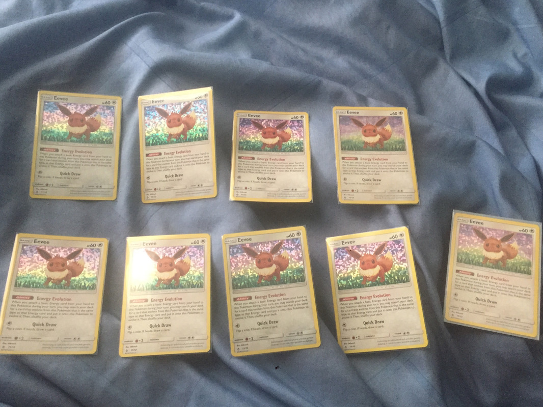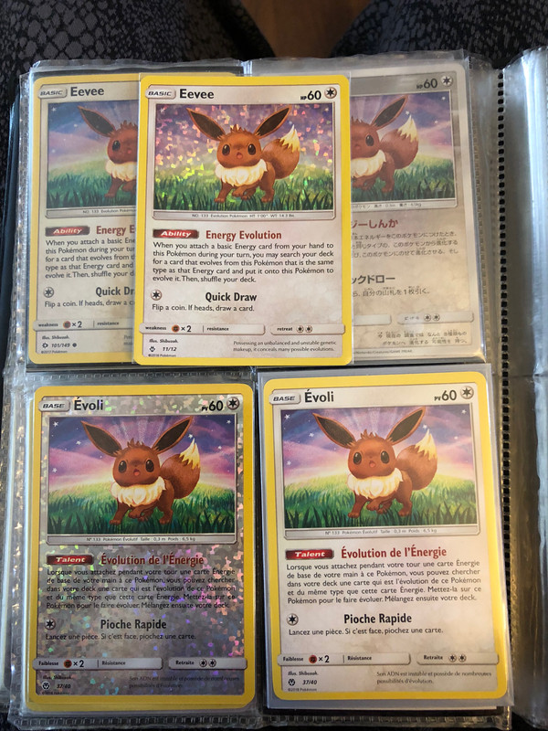 November 2nd english Lost Thunder Eevee x2- regular & reverse holo unless they change formats for this 200+ set!!! November 2nd Eevee alternative art promo! Same as the Japanese pokecenter promo. November 23rd japanese Eevee GX plus bonus common Eevees!!! November 30th Let’s Play “Eevee theme deck” with an expected front holo card like previous decks & more common Eevees no doubt . January 18th [edit!!!] Europe is getting an Eevee GX box!!! I’ might be an eBay stalker for that jumbo & another language Eevee GX which is rare in my collection. I usually collect japanese or English cards unless they are unique like the French McDonald’s pokemon cards.