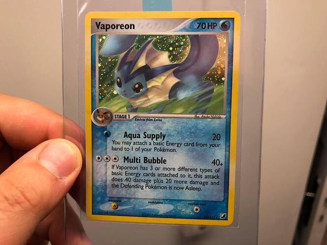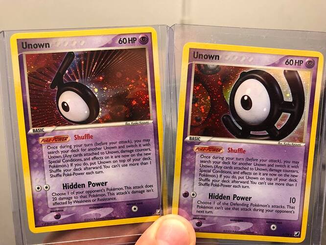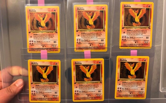 One of these Moltres are not like the others. It has no visible stars in the entire holo box, I don’t think I’ve ever seen a starfoil as toned down as this one. And it was like that straight from the pack into a plastic box. It’s just straight holo, like an oil spill without the oil spill, I like it a lot. Can’t remember which one it is (I think it is the bottom left one), I’ll take some close ups of it the next time I see it.