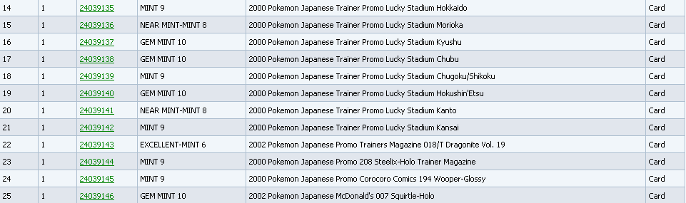 Man those are some nice grades. Makes me want more of the older japanese promos like the vending series and corocoro promos. Anyone know where i can get mint vending sets lol