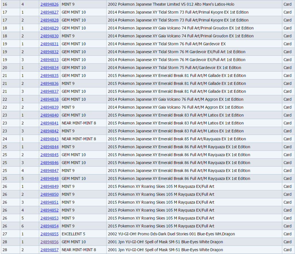 Wow some really nice grades in there, were the 5s and 4 expected by any chance? Nice to see more people grading yu-gi-oh cards being as they were the other mad “craze” that swept my school as a kid, really want me a few of them which I’m going to look for soon, are any of them yours by any chance? If so are condition descriptions on ebay any good because I can’t remember where but somewhere on the forum I heard that sellers were way more lax on how they describe condition?