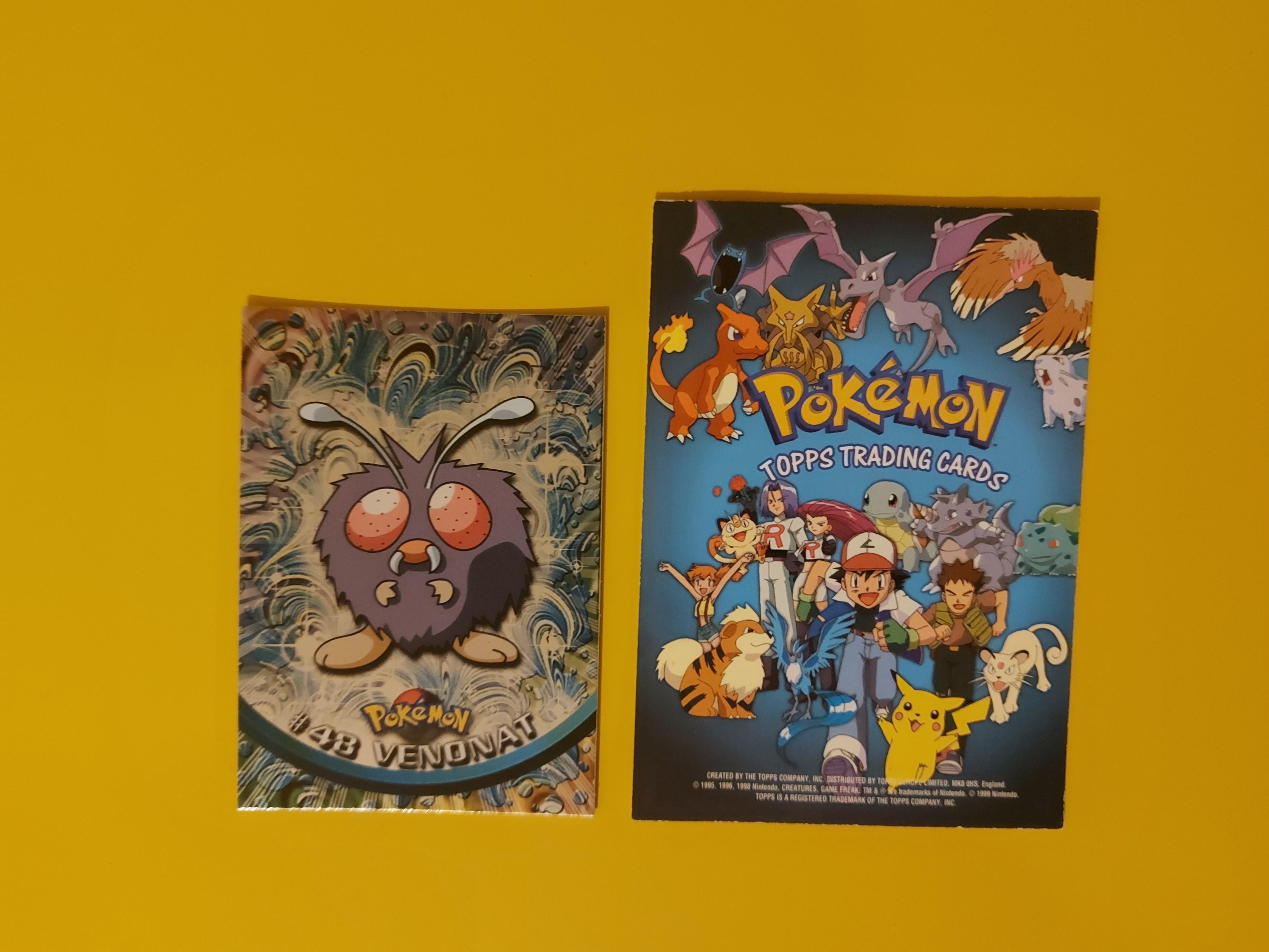 All of these Oversized Tin Topper cards were found inside of the Topps tins along with 7 packs which contained the normal Topps cards. You can watch a video of one of these tins being opened here. Each Tin Topper matched the Pokémon pictured on the outside of the tin, meaning there were 5 different tin designs. Each of these tins had an MSRP of $19.99 USD when they were sold which (adjusting for inflation) would be about $31.24 USD in 2020.