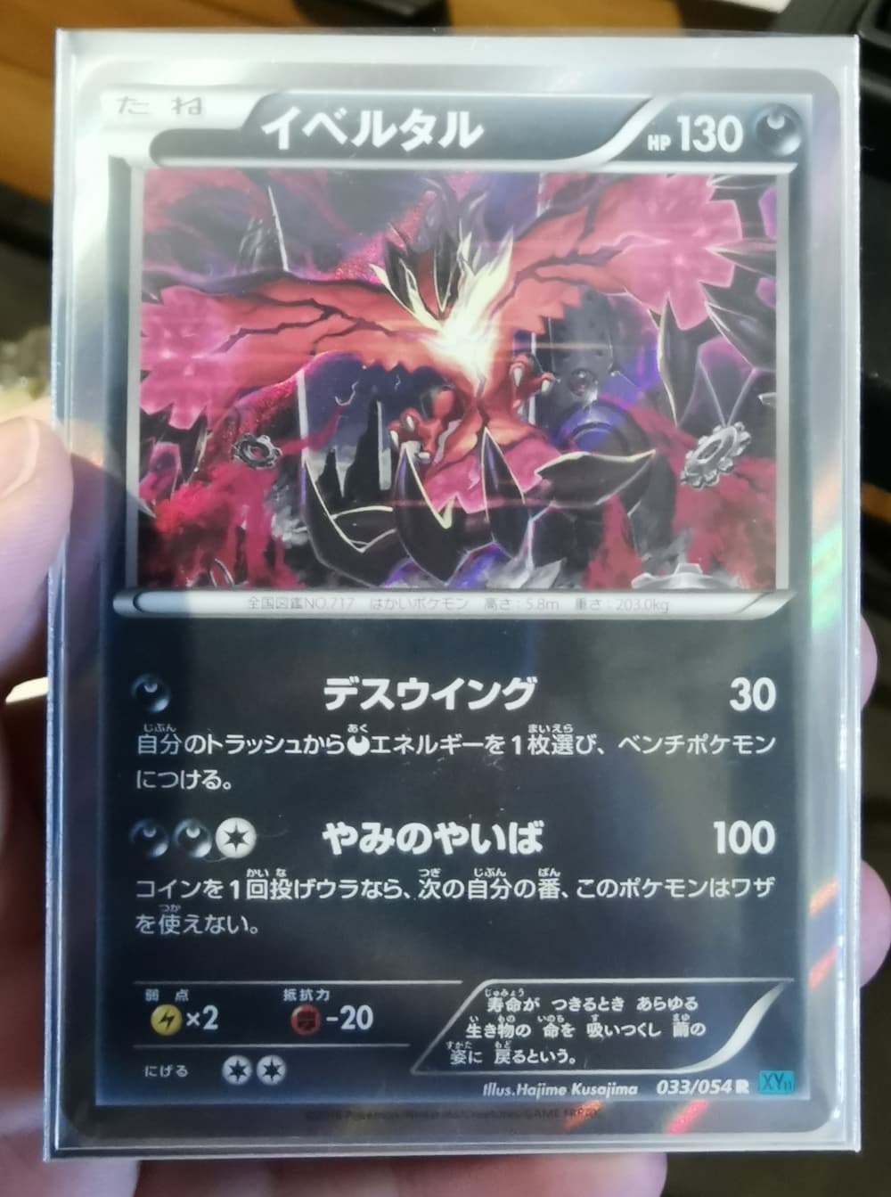 I finally got the unlimited version of XY11 033/054 Yveltal. After months of looking on the Japanese market, I found it on carmarket of all places. I was still in disbelief when I bought it, because I already had the case of a seller telling me they had an unlimited version and they sent me a 1st ed.
