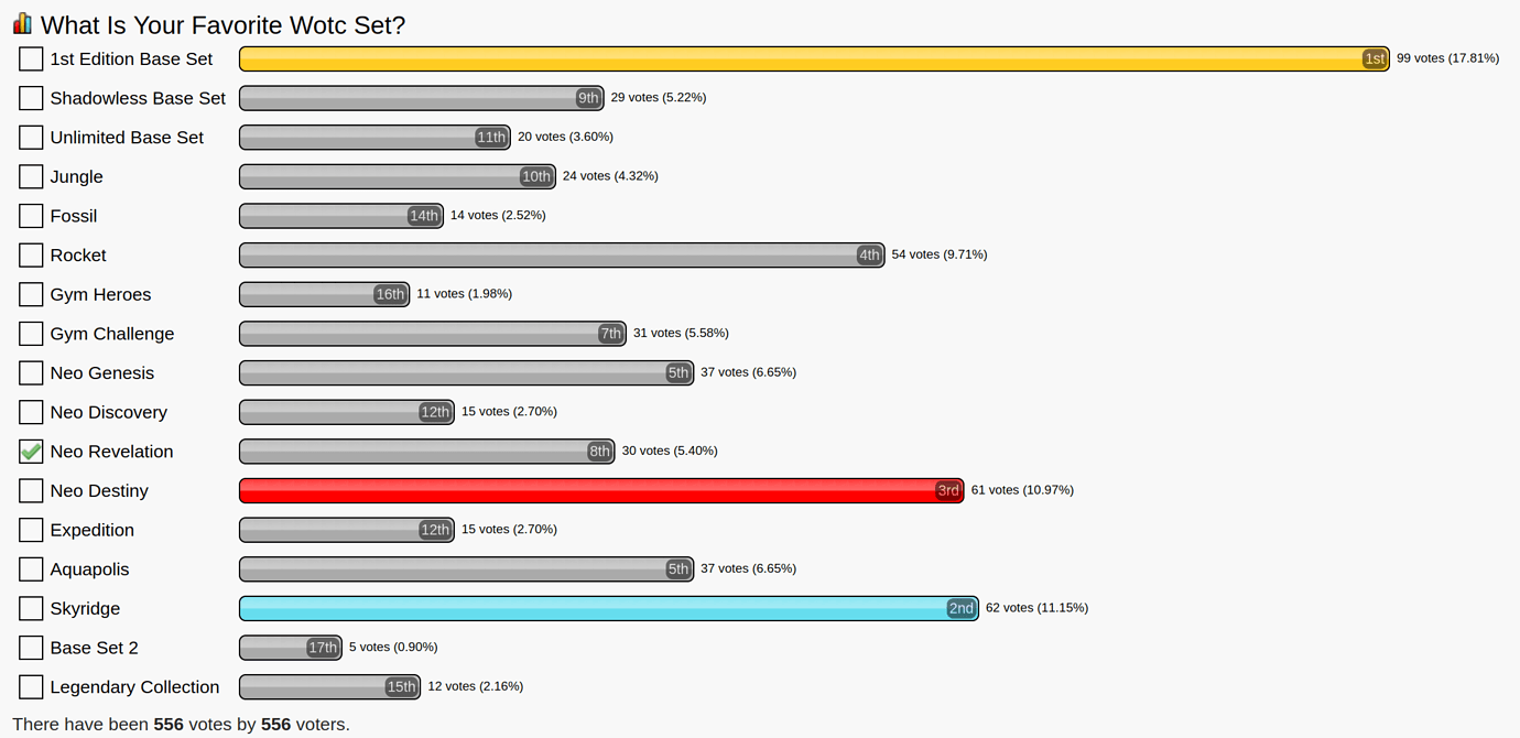 It never made sense to me why Base Set was given 3 poll options in that poll. Base Set is Base Set. Some cards just have different coloring and a 1st Edition stamp.