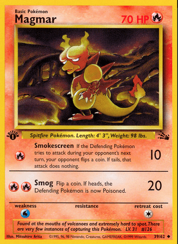 Magmar fossil beats magmar base definitely.