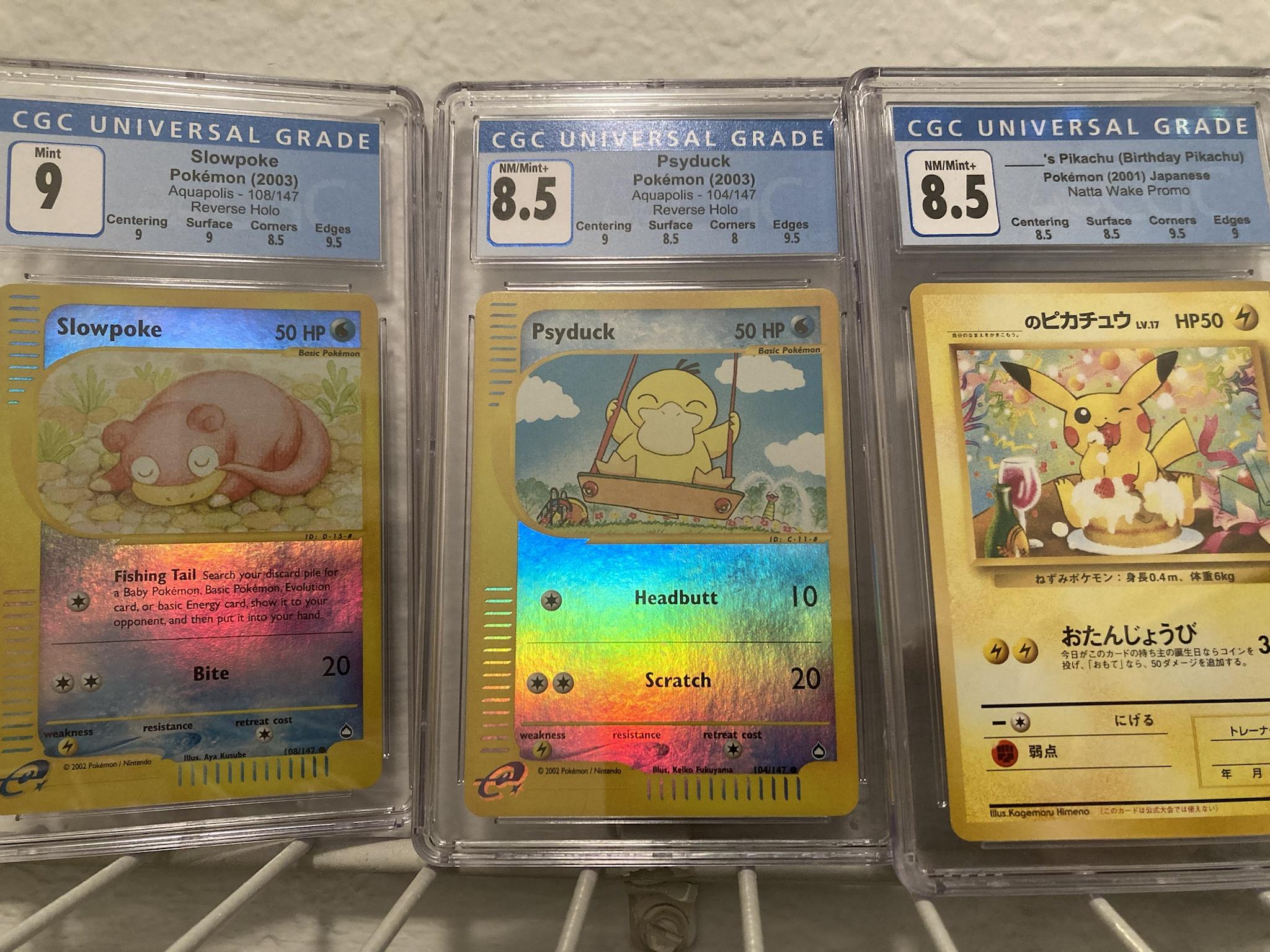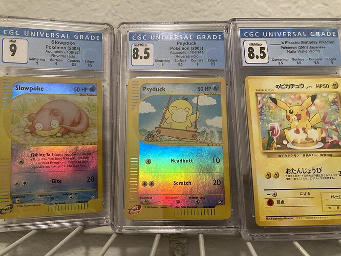 Was very pleased to see this reverse holo Aquapolis pair come up for sale in such solid grades (thanks eBay alerts!), and the Pikachu is a recent return from CGC I’m pretty happy with.