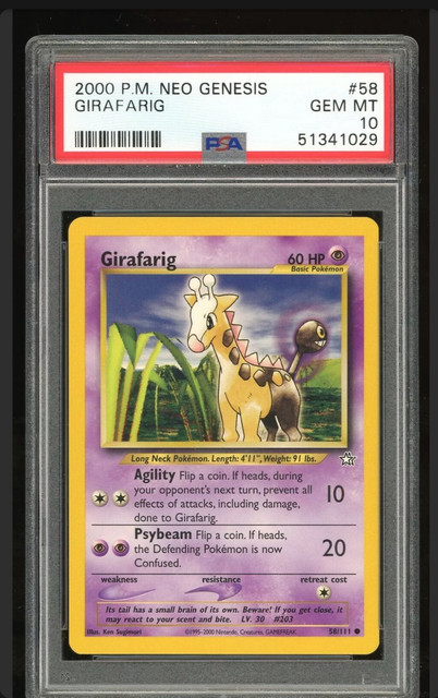 I just couldn’t wait to post this until I received it. So incredibly excited to get my Giraffe boi in a 10! Stole it at a ridiculously good price as well, and couldn’t be happier. I’m still in the process of putting together my English and Japanese Girafarig master sets, but couldn’t pass this one up! Pop 2 baby!