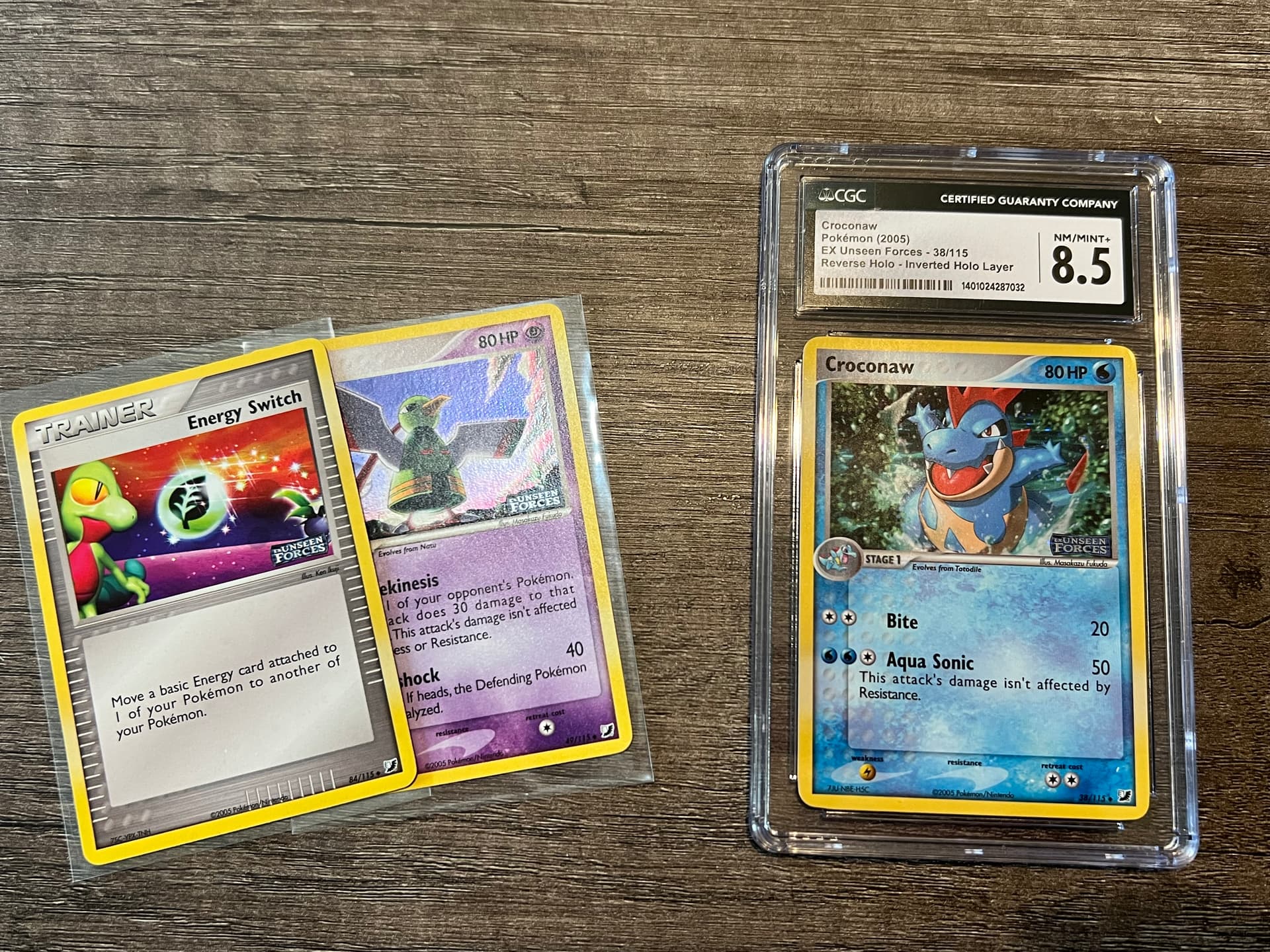 On the right is an eBay purchase that I’m super glad came up because the foil on Croconaw is also really difficult to see.