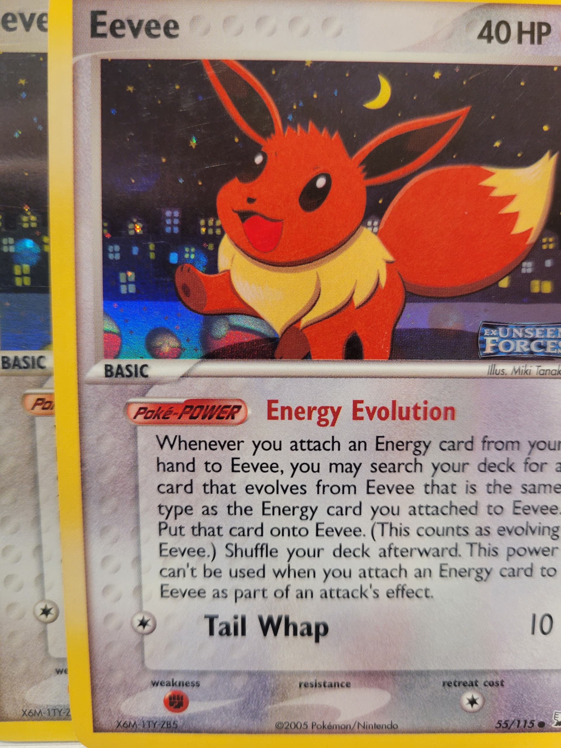 I have trainer energy switch, xatu 49, and eevee 55 all with upside down holo foil.