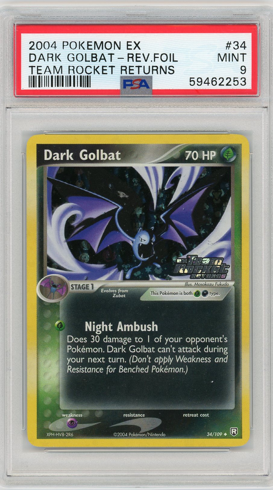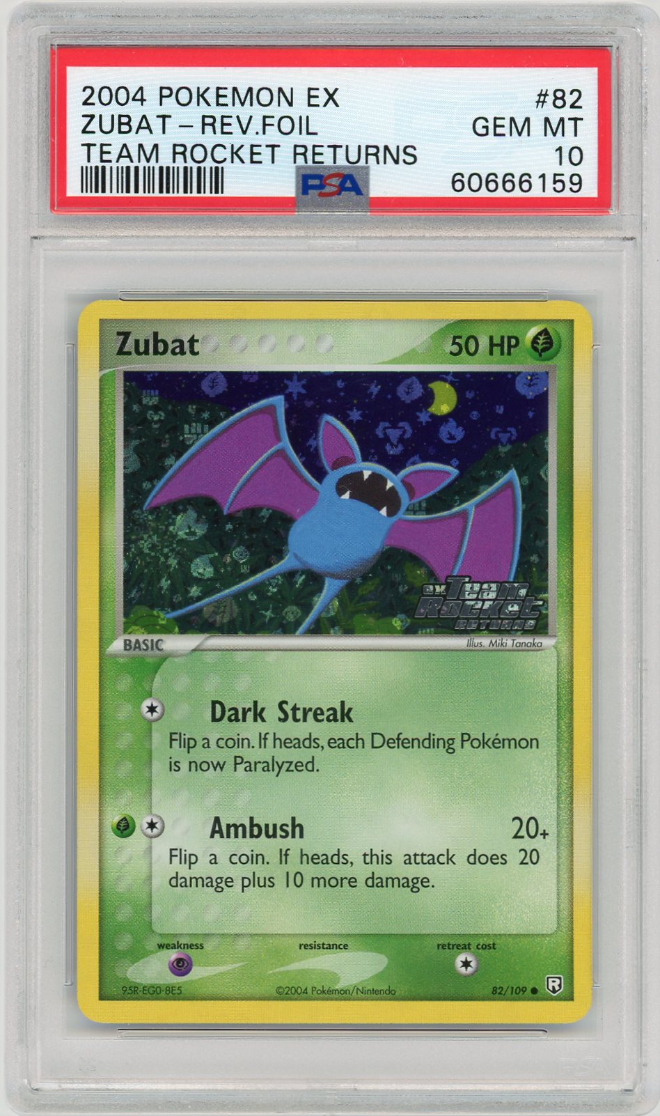 While I’ve always loved Zubat, I didn’t start collecting him until our fellow member @dblast generously gave me my first PSA 10 Zubat for the 2021 E4 Secret Santa. In honor of him, Team Rocket’s Zubat will debut this thread. This is a very grotesque Zubat. His fangs sticking out and his posture make it seem that he is gathering prey. Certainly a very appropriate card for the Team Rocket set.