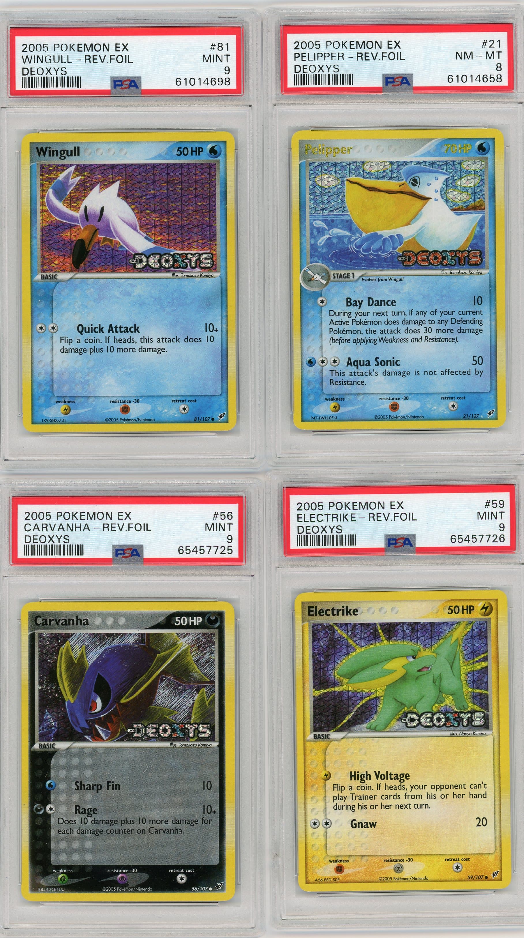 Last is Ex Deoxys. I enjoy the holo pattern, and am trying to collect Gen III reverse holos from this set. My favorite in this batch is the Carvanha, but the Pelipper and Wingull are close too.